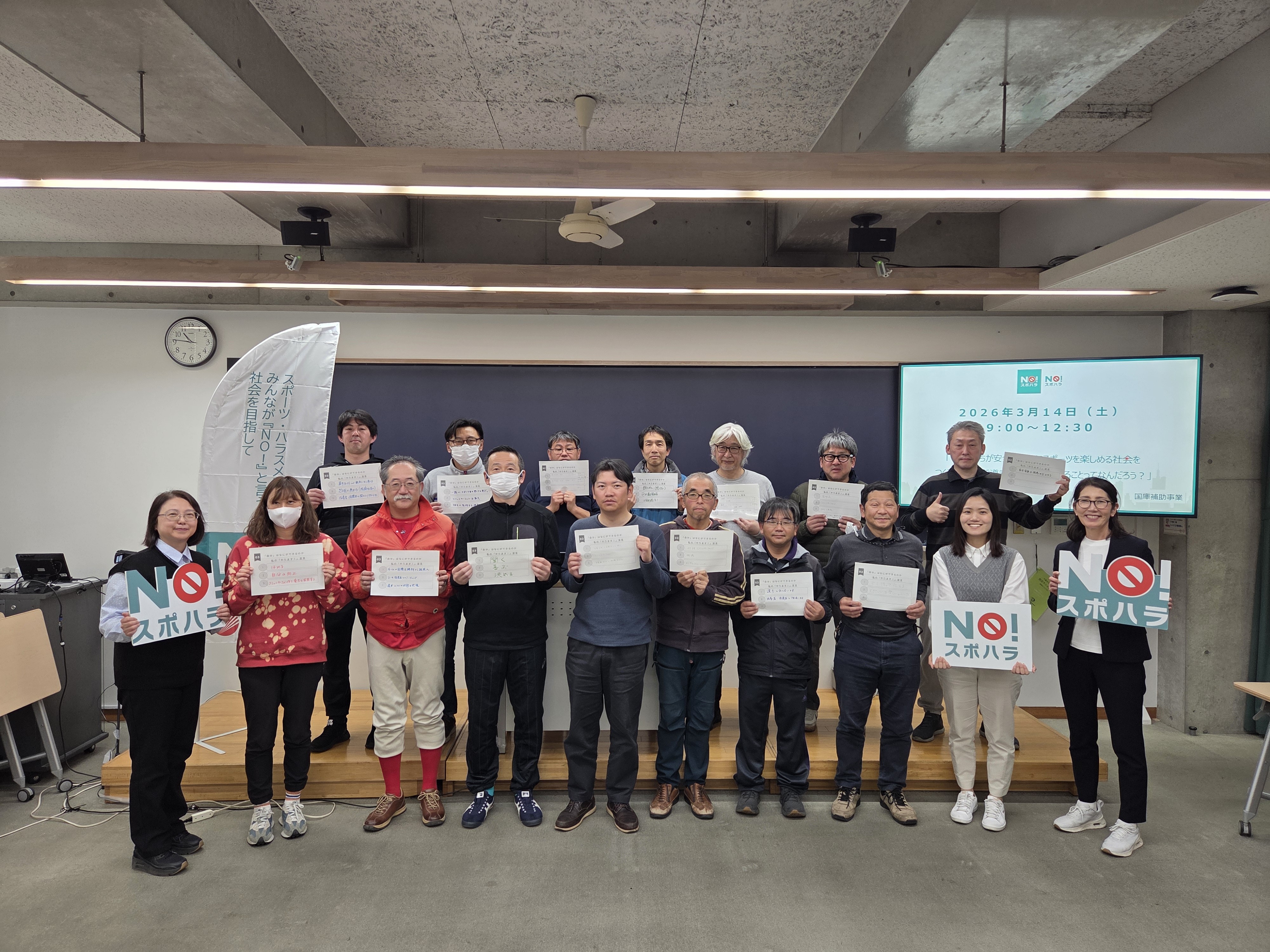過去のセミナー参加者の声(一部抜粋) ・私はスポーツ少年団の監督の立場で受講しましたが、色々なスポーツの指導者と話す機会が出来たのは嬉しいですね。(60代・男性) ・周りには「スポハラ」に値する言葉や練習環境をかけている人がたくさんいます。見て見ぬふりではなくなんらかのアプローチをかけていきたいと今回の参加でより強く思いました。(30代・女性) ・常に相手に対して敬意を持って対応することを心がけていくことで、ハラスメントは無くなると考えます。(50代・男性) ・今回のセミナーによって自分の考えから見直し、他の指導者にも教え、見守ることが必要だと感じました。(40代・男性) ・「スポハラ」について、他人事ではなく身近に発生するものだと周知し、指導者も保護者も一体となって、子どもの明るい未来の為に学び続けることが大事だと思います。(50代・女性) 過去の開催の様子 2025年11月30日 @宮城県仙台市(聖和学園短期大学) 2025年12月20日 @東京都渋谷区 2026年1月24日 @愛媛県松山市 2026年3月14日 @東京都板橋区(大東文化大学) 2026年3月20日 @神奈川県横浜市(桐蔭横浜大学) 過年度に実施したイベントに関するページはコチラ