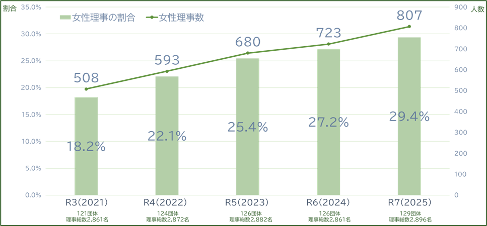 ●理事2,896名 (前年:2,861名) のうち女性理事は807名 (前年:723名)→ 84名増加